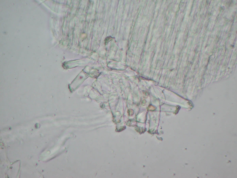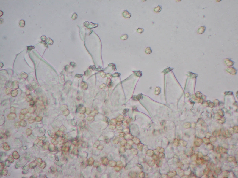 Cau.: 頂部から基部までmetuloid だが、下部に行くほど数は減る。