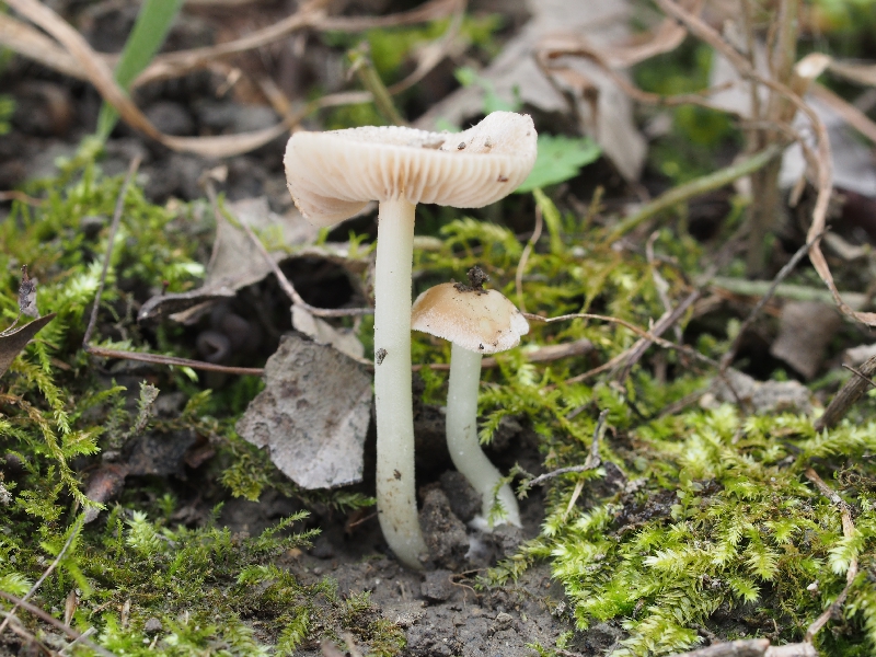 本種のマクロな特徴は、シロニセトマヤタケにも似た、固く締まった真っ白な柄を持つ事と、傘は淡い肉色で、頂部が白っぽくなることなどである。