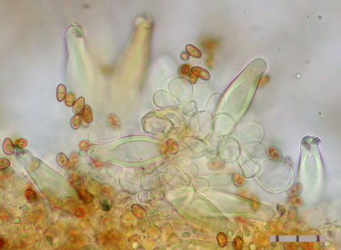 (-2.6um); Cheilo-paracystidia: 17-34 x 6-15 um, narrowly clavate to obovoid, abundant.