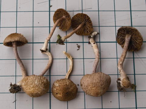 4. 子実体は細長くない。側シスチジアは褐色の内容物を持つ ・・・ I. obscura